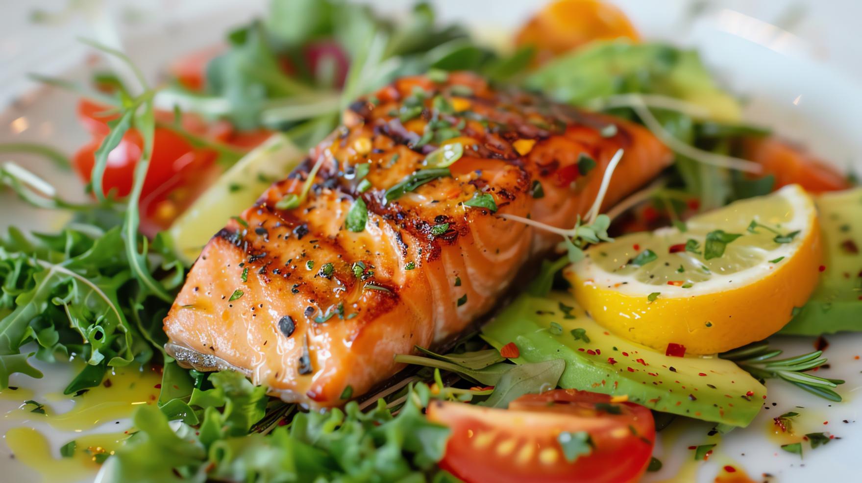 Grilled salmon over romaine lettuce with red onions, cherry tomatoes, grilled pineapple, cucumbers, avocado slices, cilantro, and topped with our delicious homemade chipotle dressing