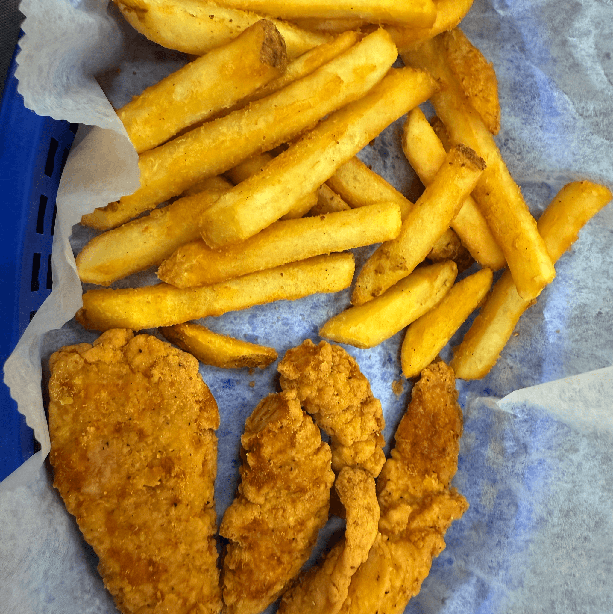 Stuffed flour tortilla with grilled chicken or steak, Spanish rice, refried beans, lettuce, sour cream, and pico de gallo. Served with French fries